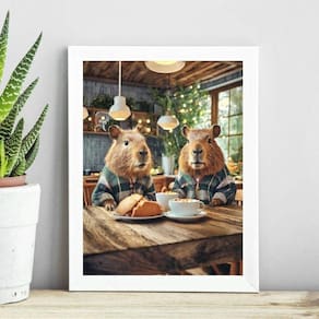 Quadro decorativo capivaras na cozinha 24x18cm - com vidro Moldura: madeira branca Informações do produto tire todas as suas dúvidas no descritivo abaixo: decoração para quarto, sala, cozinha, escritório, área gourmet e muito mais. Chega de paredes vazias medidas - cada peça tem 24x18cm a5 . Material do papel - papel fotográfico brilhante de altíssima resolução acabamento - todos os quadros são acompanhados de vidro para proteção da imagem. - moldura em madeira maciça na cor preta ou branca conforme produto escolhido e pendurador . - os quadros são embalados de forma segura com plástico bolha com camada dupla de acordo com o tamanho dos quadros. Garantia - garantia de 3 meses. Meu quadro chegou. Como posso fixá-lo Você precisa apenas de um martelo e um prego, pois os quadros já vão acompanhados de penduradores. Esta é a forma mais indicada. Como posso limpar meu quadro A limpeza é feita como um móvel comum da sua casa. Apenas um pano seco ou espanador são suficientes para tal