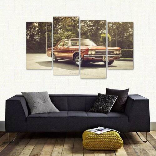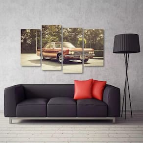 Quadro Decorativo Carro Antigo Vintage Em Tecido 4 Peçase