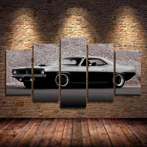 Quadro Decorativo Carro Charger 5 peças em tecido 1