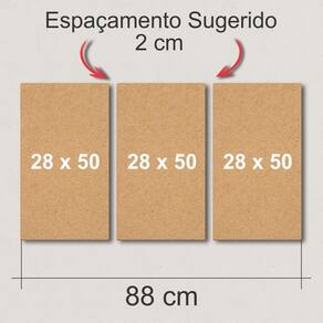 Tamanho total com espaçamento de 2cm entre as placas - 88 cm x 50 cm