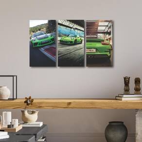 Quadro Decorativo Carro Corrida Verde Pista Motor Velocidade