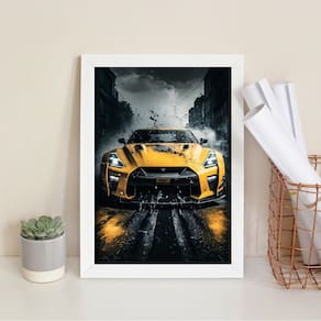 Quadro decorativo carro esportivo preto e amarelo 33x24cm