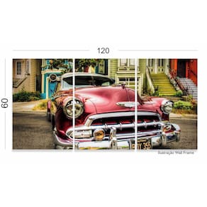 Quadro Decorativo Carro Vintage Escritório Em Tecido 3 Peças