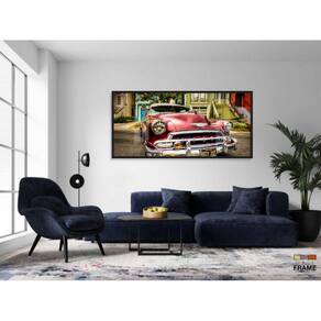 Quadro Decorativo Carro Vintage Escritório130x60 Moldura Preta 2x2
