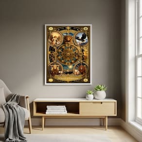 Quadro Decorativo Carta de Tarô A Roda da Fortuna - 70x50cm - Cor: Moldura Preta