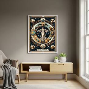 Quadro Decorativo Carta de Tarô O Mundo - 70x50cm - Cor: Moldura Branca
