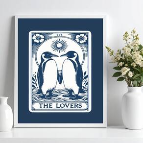 Quadro Decorativo Carta Tarot - Pinguins 45x34cm - Cor: Moldura preta