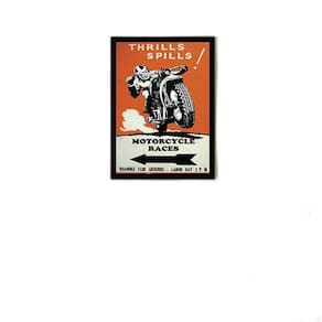 Quadro decorativo cartaz retrô motorcycle races 45x34cm Tamanho: a3 45 x 34 Acabamento: película de acetato Moldura: madeira branca Informações do produto