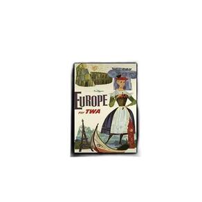 Quadro decorativo cartaz vintage cia aérea europe 34x23cm - moldura branca Tamanho: a4 20 x 30 Acabamento: película de acetato Moldura: madeira branca Informações do produto