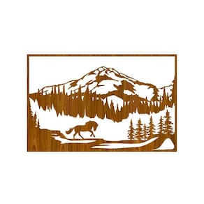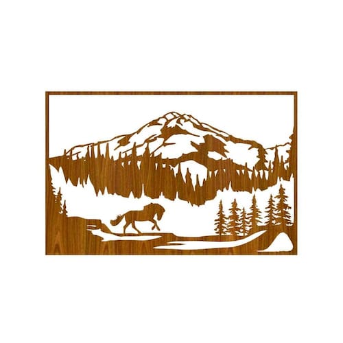 Quadro Decorativo Carvalho Mdf Cavalo Livr Montanha 40X20Cm