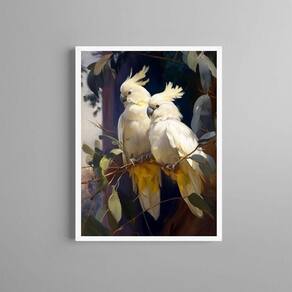Quadro decorativo casal de cacatuas 45x34cm - com vidro Cor: moldura preta Informações do produto tire todas as suas dúvidas no descritivo abaixo: decoração para quarto, sala, cozinha, escritório, área gourmet e muito mais. Chega de paredes vazias medidas - cada peça tem 45x34cm a3 . Material do papel - papel fotográfico brilhante de altíssima resolução acabamento - todos os quadros são acompanhados de vidro para proteção da imagem. - moldura em madeira maciça na cor preta ou branca conforme produto escolhido e pendurador . - os quadros são embalados de forma segura com plástico bolha com camada dupla de acordo com o tamanho dos quadros. - de 3 meses. Meu quadro chegou. Como posso fixá-lo Você precisa apenas de um martelo e um prego, pois os quadros já vão acompanhados de penduradores. Esta é a forma mais indicada. Como posso limpar meu quadro A limpeza é feita como um móvel comum da sua casa. Apenas um pano seco ou espanador são suficientes para tal Ean: 7891234539892