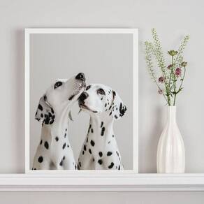 Quadro decorativo casal de dálmatas 45x34cm Cor: moldura preta Informações do produto tire todas as suas dúvidas no descritivo abaixo: decoração para quarto, sala, cozinha, escritório, área gourmet e muito mais. Chega de paredes vazias. Medidas - cada peça tem 45x34cm a3 . Material do papel - papel fotográfico brilhante de altíssima resolução acabamento - todos os quadros são acompanhados de uma película de acetato para proteção da imagem. - os quadros são embalados de forma segura com plástico bolha com camada dupla de acordo com o tamanho dos quadros. - de 3 meses. Meu quadro chegou. Como posso fixá-lo Você precisa apenas de um martelo e um prego, pois os quadros já vão acompanhados de penduradores. Esta é a forma mais indicada. Caso prefira, você pode utilizar uma fita dupla face neste caso, sugerimos de alta qualidade para evitar que descole e seu quadro caia . Como posso limpar meu quadro A limpeza é feita como um móvel comum da sua casa. Apenas um pano seco ou espanador são suficientes para tal Marca: Não Informado Ean: 7901039747726