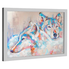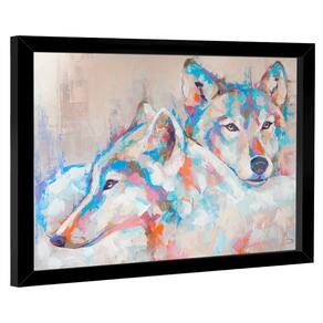 Quadro Decorativo Casal de Lobo Aquarela Moldura Preta e Vidro - 84x54cm -