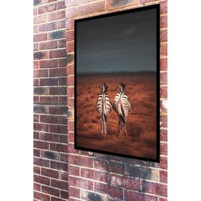 Quadro Decorativo Casal de Zebras Caminhando - 70x50cm - Cor: Moldura Branca