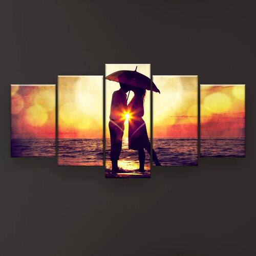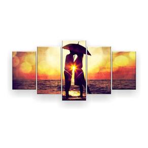 Quadro Decorativo Casal Guarda Chuva 5pc 129x61 Sala Quarto