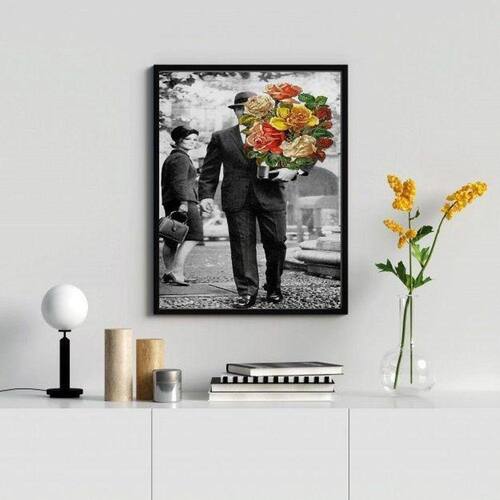 O Quadro Decorativo Casal Vintage Flores é perfeito para decorar diversos ambientes, como quartos, salas, cozinhas, escritórios e áreas gourmet. Chega de paredes vazias! Com medidas de 45x34cm A3 , cada peça é feita em papel fotográfico brilhante de altíssima resolução, e possui uma moldura de madeira preta, que confere um toque elegante e sofisticado.