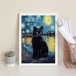 Quadro decorativo cat night starry art 45x34cm Moldura: madeira preta Informações do produto tire todas as suas dúvidas no descritivo abaixo: decoração para quarto, sala, cozinha, escritório, área gourmet e muito mais. Chega de paredes vazias. Medidas - cada peça tem 45x34cm a3 . Material do papel - papel fotográfico brilhante de altíssima resolução acabamento - todos os quadros são acompanhados de uma película de acetato para proteção da imagem. - os quadros são embalados de forma segura com plástico bolha com camada dupla de acordo com o tamanho dos quadros. Garantia - garantia de 3 meses. Meu quadro chegou. Como posso fixá-lo Você precisa apenas de um martelo e um prego, pois os quadros já vão acompanhados de penduradores. Esta é a forma mais indicada. Caso prefira, você pode utilizar uma fita dupla face neste caso, sugerimos de alta qualidade para evitar que descole e seu quadro caia . Como posso limpar meu quadro A limpeza é feita como um móvel comum da sua casa. Apenas um pano seco ou espanador são suficientes para tal Ean: 7892760626308