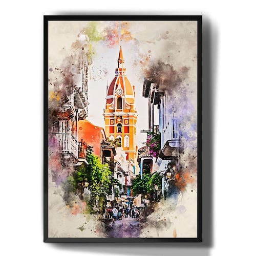 Quadro decorativo Catedral Colombia Watercolor Arte Descrição