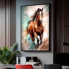 Quadro Decorativo Cavalo Abstrato Moldura Branca - 118x78cm -
