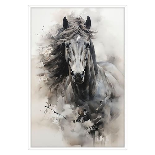 Quadro Decorativo Cavalo Aquarela Moldura Cx Alta 40x60 Titulos Moldura Branca