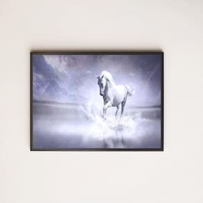 Quadro decorativo cavalo branco 33x24cm - com vidro Moldura: madeira preta Informações do produto Decoração para quarto, sala, cozinha, escritório, área gourmet e muito mais. Chega de paredes vazias medidas - cada peça tem 33x24cm a4 . Material do papel - papel fotográfico brilhante de altíssima resolução Acabamento - todos os quadros são acompanhados de vidro para proteção da imagem. - Moldura em madeira maciça na cor preta e pendurador . - Os quadros são embalados de forma segura com plástico bolha com camada dupla de acordo com o tamanho dos quadros. - de 3 meses. Meu quadro chegou. Como posso fixá-lo Você precisa apenas de um martelo e um prego, pois os quadros já vão acompanhados de penduradores. Esta é a forma mais indicada. Como posso limpar meu quadro A limpeza é feita como um móvel comum da sua casa. Apenas um pano seco ou espanador são suficientes para tal Marca: Não Informado