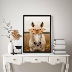 Quadro decorativo cavalo com borboleta 24x18cm Cor: moldura branca Informações do produto tire todas as suas dúvidas no descritivo abaixo: decoração para quarto, sala, cozinha, escritório, área gourmet e muito mais. Chega de paredes vazias medidas - cada peça tem 24x18cm a5 . Material do papel - papel fotográfico brilhante de altíssima resolução acabamento - todos os quadros são acompanhados de uma película de acetato para proteção da imagem. - os quadros são embalados de forma segura com plástico bolha com camada dupla de acordo com o tamanho dos quadros. - de 3 meses. Meu quadro chegou. Como posso fixá-lo Você precisa apenas de um martelo e um prego, pois os quadros já vão acompanhados de penduradores. Esta é a forma mais indicada. Caso prefira, você pode utilizar uma fita dupla face neste caso, sugerimos de alta qualidade para evitar que descole e seu quadro caia . Como posso limpar meu quadro A limpeza é feita como um móvel comum da sua casa. Apenas um pano seco ou espanador são suficientes para tal