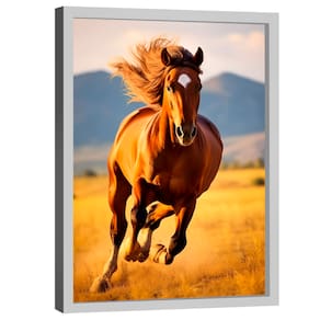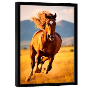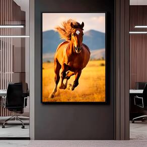 Quadro Decorativo Cavalo Correndo Moldura Preta - 84x54cm -