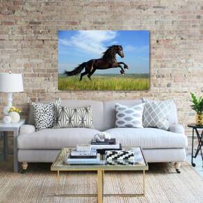 Quadro decorativo Cavalo Preto no Campo Pulando