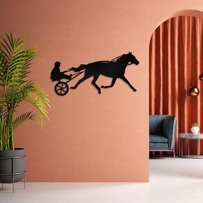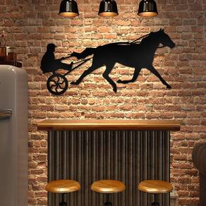 Especificações Técnicas: Medidas: comprimento: 59 cm altura: 3mm largura: 28 cm Material: mdf 3mm Cor: preto Tema: cavalo Formas de instalação: basta utilizar fitas dupla face Quantidade: 1 unidade