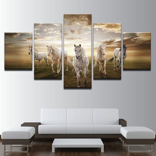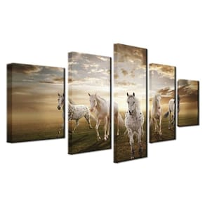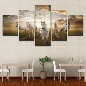 Quadro Decorativo Cavalos 5 partes 130x65 em tecido m1