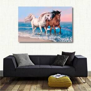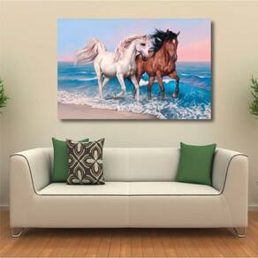 Quadro decorativo Cavalos Branco e Marrom Arte 1