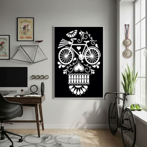 Quadro Decorativo Caveira De Bicicleta-70x50cm Mold Branca