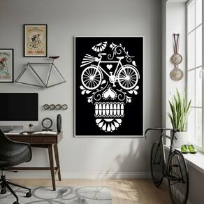 Quadro Decorativo Caveira De Bicicleta-70x50cm Mold Preta
