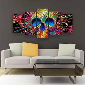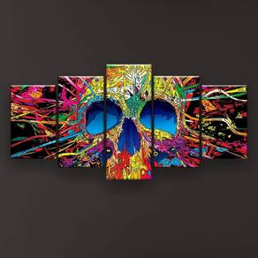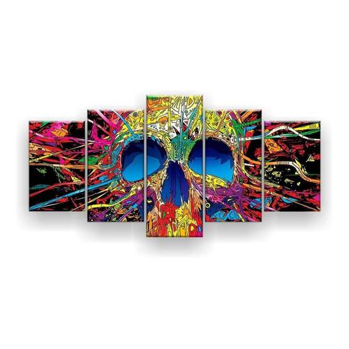 Quadro Decorativo Caveira Psicodélica Color Print 5pc 129x61