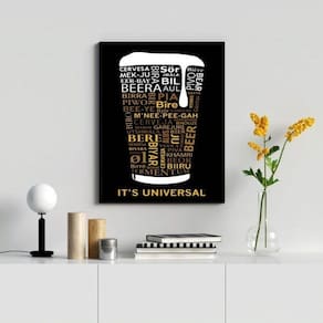 Quadro Decorativo Cerveja- Universal Beer 45X34Cm O Quadro Decorativo Cerveja- Universal Beer é perfeito para decorar diversos ambientes, como quarto, sala, cozinha, escritório, área gourmet e muito mais. Chega de paredes vazias! O produto possui medidas de 45x34cm A3 e é feito com papel fotográfico brilhante de altíssima resolução. Além disso, cada quadro acompanha uma película de acetato para proteção da imagem. A moldura é feita em madeira preta, proporcionando um acabamento elegante e sofisticado. Os quadros são embalados de forma segura com plástico bolha de camada dupla, garantindo que cheguem em perfeito estado. Para fixar o quadro, você só precisa de um martelo e um prego, pois eles já vêm acompanhados de penduradores. Caso prefira, também é possível utilizar uma fita dupla face de alta qualidade para evitar que descole e seu quadro caia. A limpeza do quadro é muito simples, basta utilizar um pano seco ou um espanador, como você faria com um móvel comum da sua casa. Características técnicas: - Título: Quadro Decorativo Cerveja- Universal Beer 45X34Cm - Medidas: 45x34cm A3 - Material do papel: Papel fotográfico brilhante de altíssima resolução - Moldura: Madeira preta - Acabamento: Película de acetato para proteção da imagem - Embalagem: Plástico bolha com camada dupla - : 3 meses Dúvidas frequentes: 1. Como fixar o quadro? O quadro já vem acompanhado de penduradores, basta utilizar um martelo e um prego para fixá-lo na parede. Caso prefira, também é possível utilizar uma fita dupla face de alta qualidade. 2. Como limpar o quadro? A limpeza do quadro é muito simples, basta utilizar um pano seco ou um espanador, como você faria com um móvel comum da sua casa. Marca: Não Informado