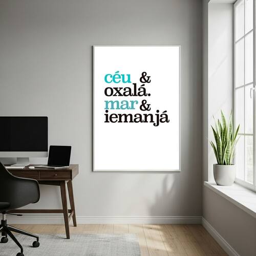 Quadro Decorativo Céu e Oxalá. Mar e Iemanjá - 70x50cm - Cor: Moldura Branca