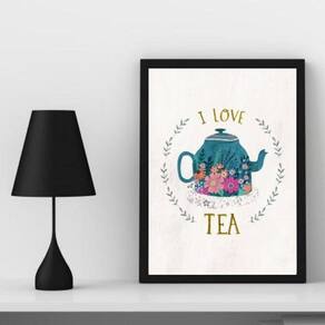 Principais características: - Título: Quadro Decorativo Chá I Love Tea 45X34Cm - Medidas: 45x34cm A3 - Material do papel: Papel fotográfico brilhante de altíssima resolução - Acabamento: Moldura de madeira preta - Proteção: Película de acetato para proteção da imagem - Fixação: Acompanha penduradores, podendo ser utilizado também fita dupla face de alta qualidade - Limpeza: Utilize um pano seco ou espanador Ean: 7897709811326
