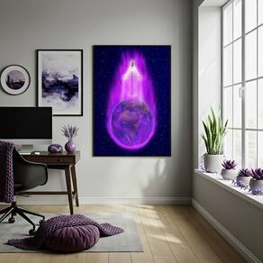 Quadro Decorativo Chama Violeta Saint Germain - 70x50cm - Cor: Moldura Preta