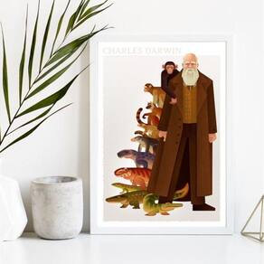 Este quadro possui uma estampa inspirada em Charles Darwin, um dos maiores cientistas da história. Seu tamanho é de 33x24cm, o equivalente a uma folha de papel A4, e ele é feito em papel fotográfico brilhante de altíssima resolução, garantindo uma imagem nítida e de qualidade.