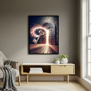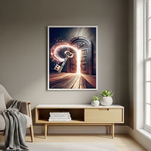 Quadro Decorativo Chave para a Porta Mágica - 70x50cm - Cor: Moldura Branca