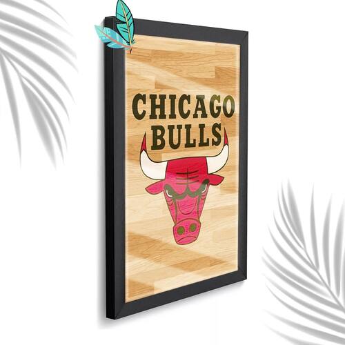 Quadro Decorativo Chicago Bulls Madeiro + Vidro 33x25 Sala - Cor: Preto
