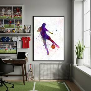 Quadro Decorativo Chutando A Bola-70x50cm - Cor: Moldura Preta