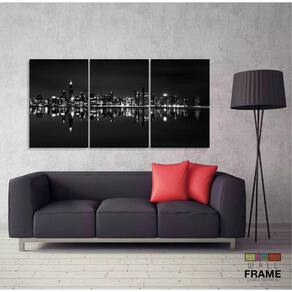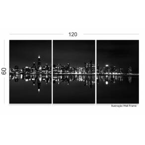 Quadro Decorativo Cidade Branco Preto 120x60 3 peças Sala Qu