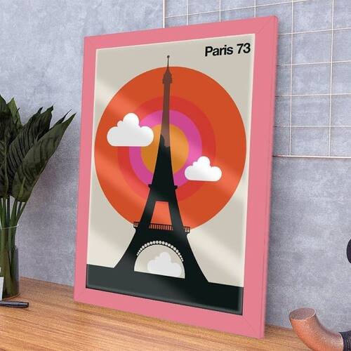 Quadro Decorativo Cidade Paris 73 Pop Art C/ Vidro 33x25 cm - Cor: Rosa