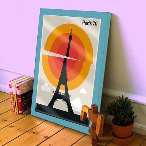 Quadro Decorativo Cidade Paris Pop Art C/ Vidro 33x25 Quarto - Cor: Azul