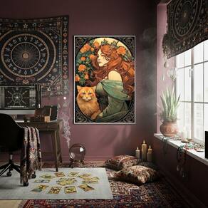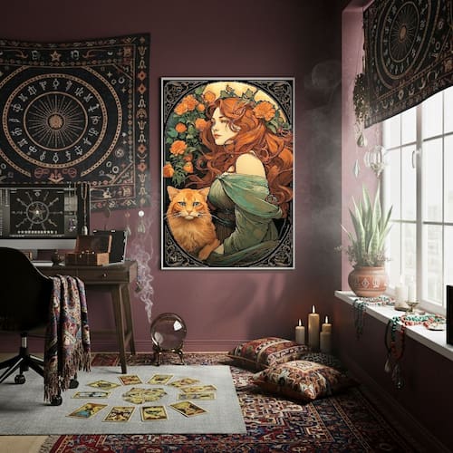 Quadro Decorativo Cigana Com Gato 70x50cm Mold Branca