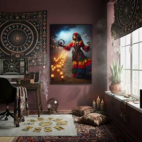 Quadro Decorativo Cigana Com Velas 70x50cm Mold Branca