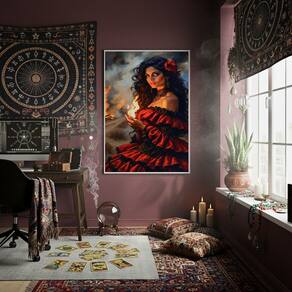 Quadro Decorativo Cigana Do Fogo 70x50cm Mold Branca
