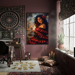 Quadro Decorativo Cigana Do Fogo 70x50cm Mold Preta