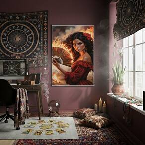 Quadro Decorativo Cigana Em Chamas 70x50cm Mold Branca